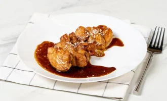 - Rozgrzać patelnię z olejem roślinnym, wrzucić startą marchewkę. Smażyć przez trzy minuty, następnie dodać wędzone mięso i smażyć przez kolejne trzy minuty.