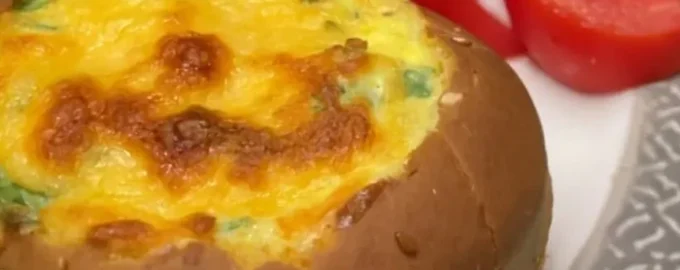 - Wyciąć środek każdej bułki. Umieścić mostek w środku, wypełnić do góry nadzieniem jajecznym i posypać serem.