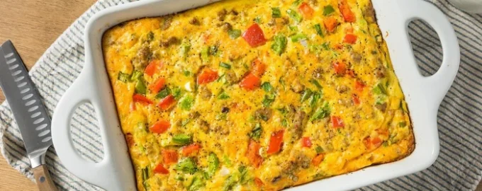 Do przygotowania potrzebna będzie dowolna kiełbasa lub szynka, jajka, mąka, zaczyn, masło, papryka, zielona cebulka, przyprawy i forma do pieczenia.