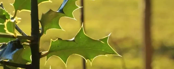 Kolczaste liście ostrokrzewu angielskiego tworzą strefy zagrożenia w ogrodzie.